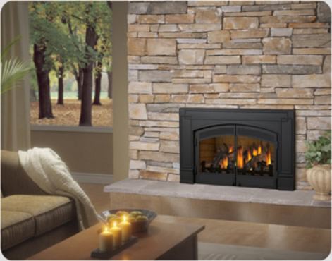 We install new highly efficient gas inserts into existing masonry fireplaces as shown here. There are many models to choose from. Call our office today for more details!